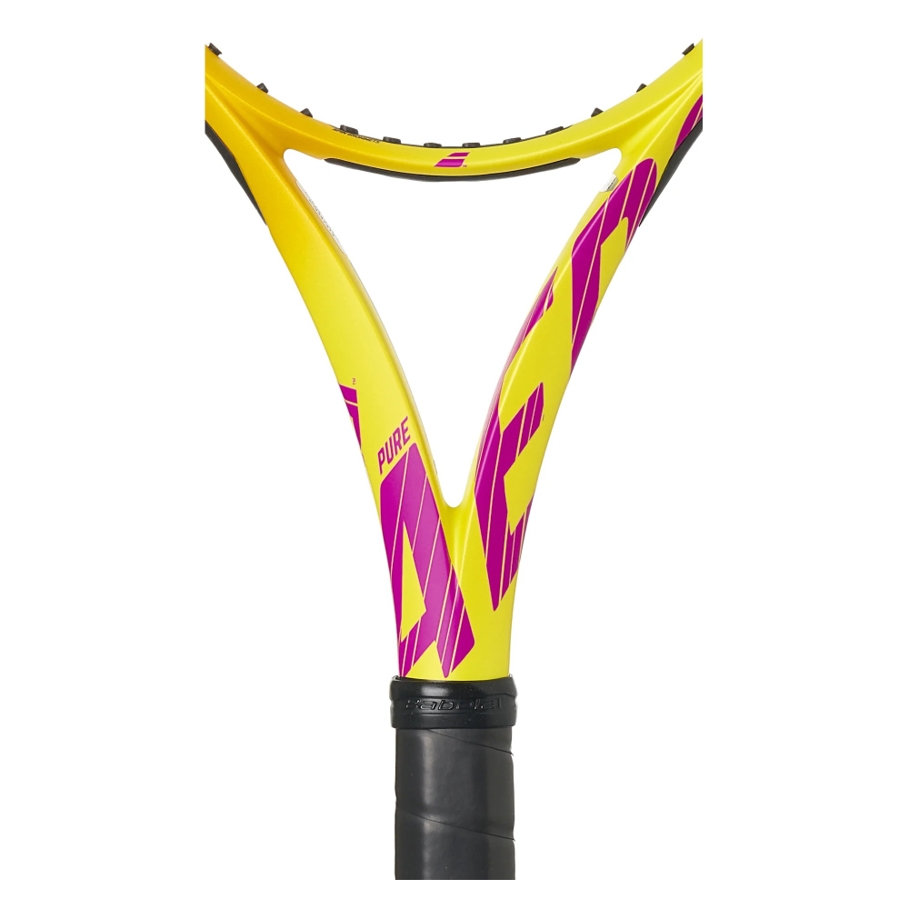 Rafael Nadal's very first signature racket- the Pure Aero Rafa was developed in collaboration with the 13-time Roland Garros champion by Babolat. Its exclusive new graphic design matches the player’s personality and distinctive gameplay. Nadal chose a combination of warm, explosive colors with dominant tones of yellow, purple and orange.