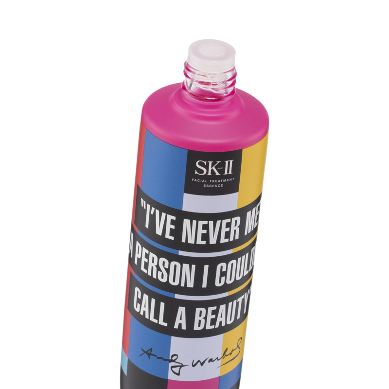 SK-II Pitera™ Essence Andy Warhol Limited Edition (#Pink) (230ml) Crossover with the famous artist Andy Warhol, this limited edition of the signature essence water is in chic and unique packaging. Formulated with the signature Pitera™, skin would appear to be dewy, translucent and revitalized.Product Features:•Skin revitalizing: this essence water is rich in Pitera™ to maintain skin generation cycle, leaving skin balanced and resilient. It also helps to remove old dull skin cells for a silky and dewy texture.•Anti-aging: it replenishes skin with abundant moisture and nutrients, helping to blur wrinkles and fine lines, leaving skin radiant and youthful.•Lightweight texture: its watery texture penetrates skin fast to nourish and revitalize. It also boosts the effects for the subsequent skincare.Ingredients :•Pitera™: boosting skin circulation •Natural Moisturizing Factor: nourishing