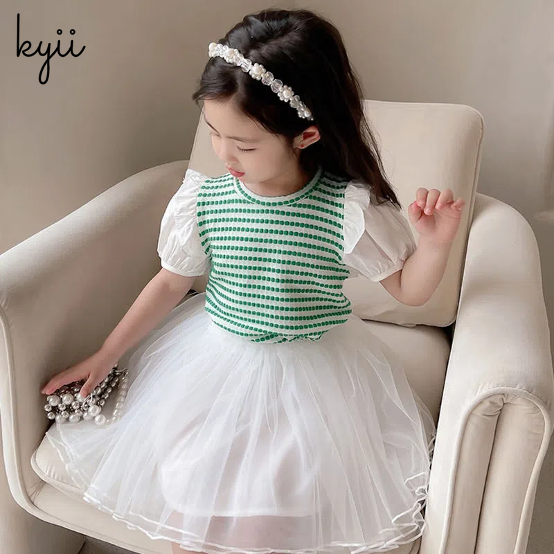 KYII Girl Summer children Korean Round-neck shirt Versatile short sleeve Top kyii0036
