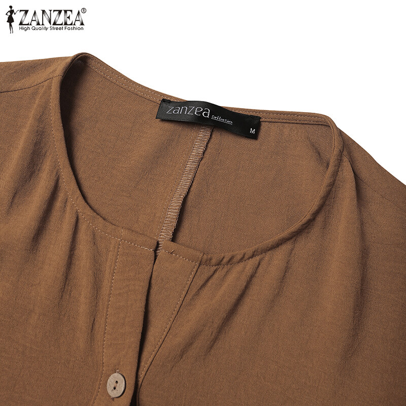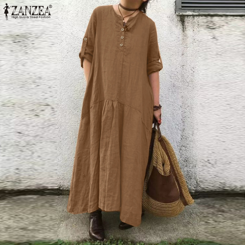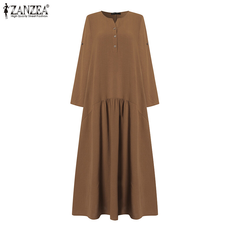 ZANZEA Women Simple Leisure Full Sleeved Loose Casual Maxi Dress Baggy Dresses #15