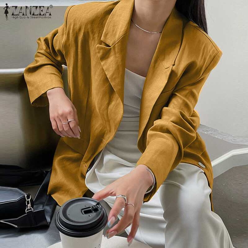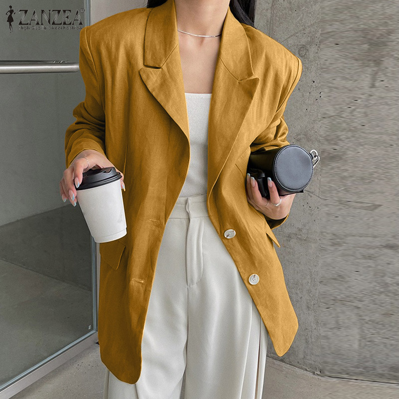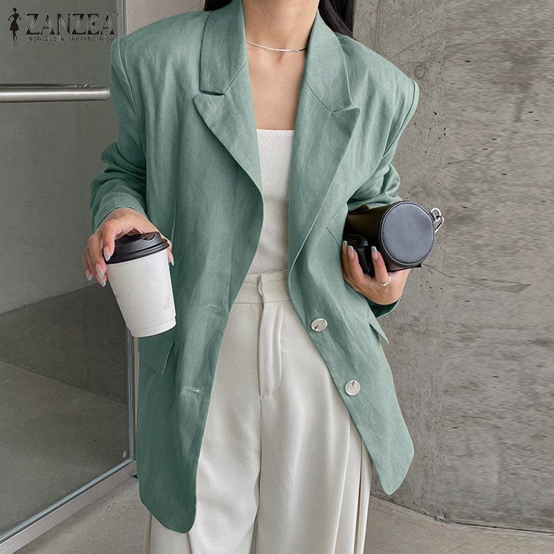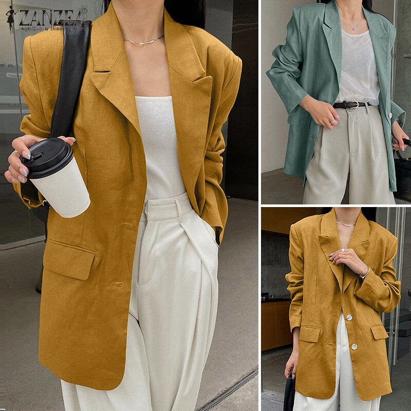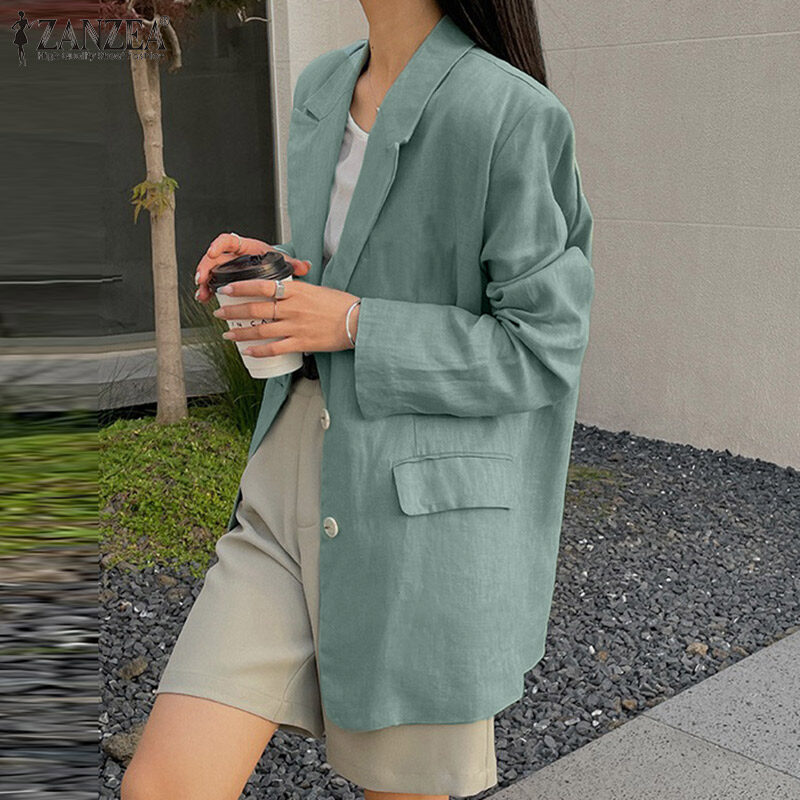 ZANZEA Korean Style Women's Fashion Versatile Single-Breasted Blazer Commute Lapel Neck Suits #10