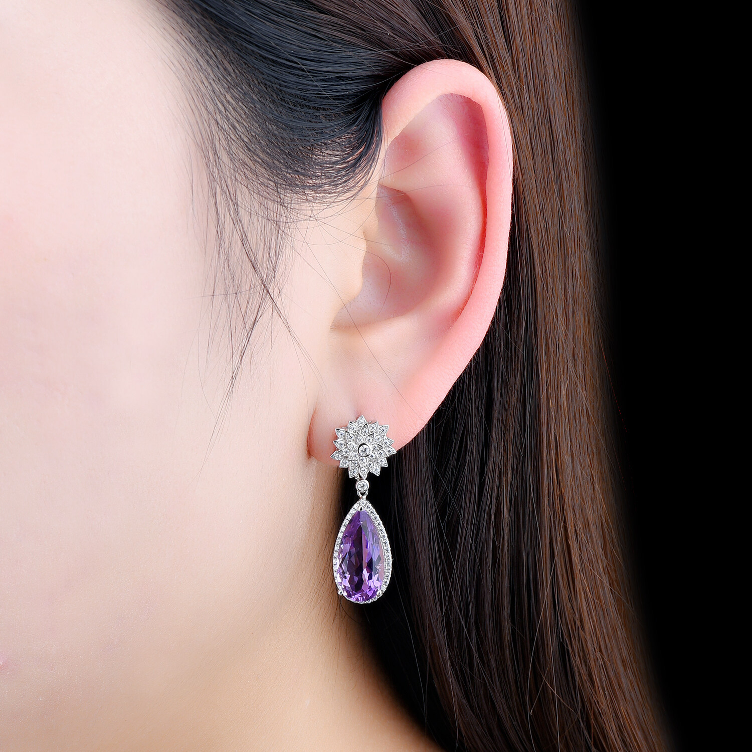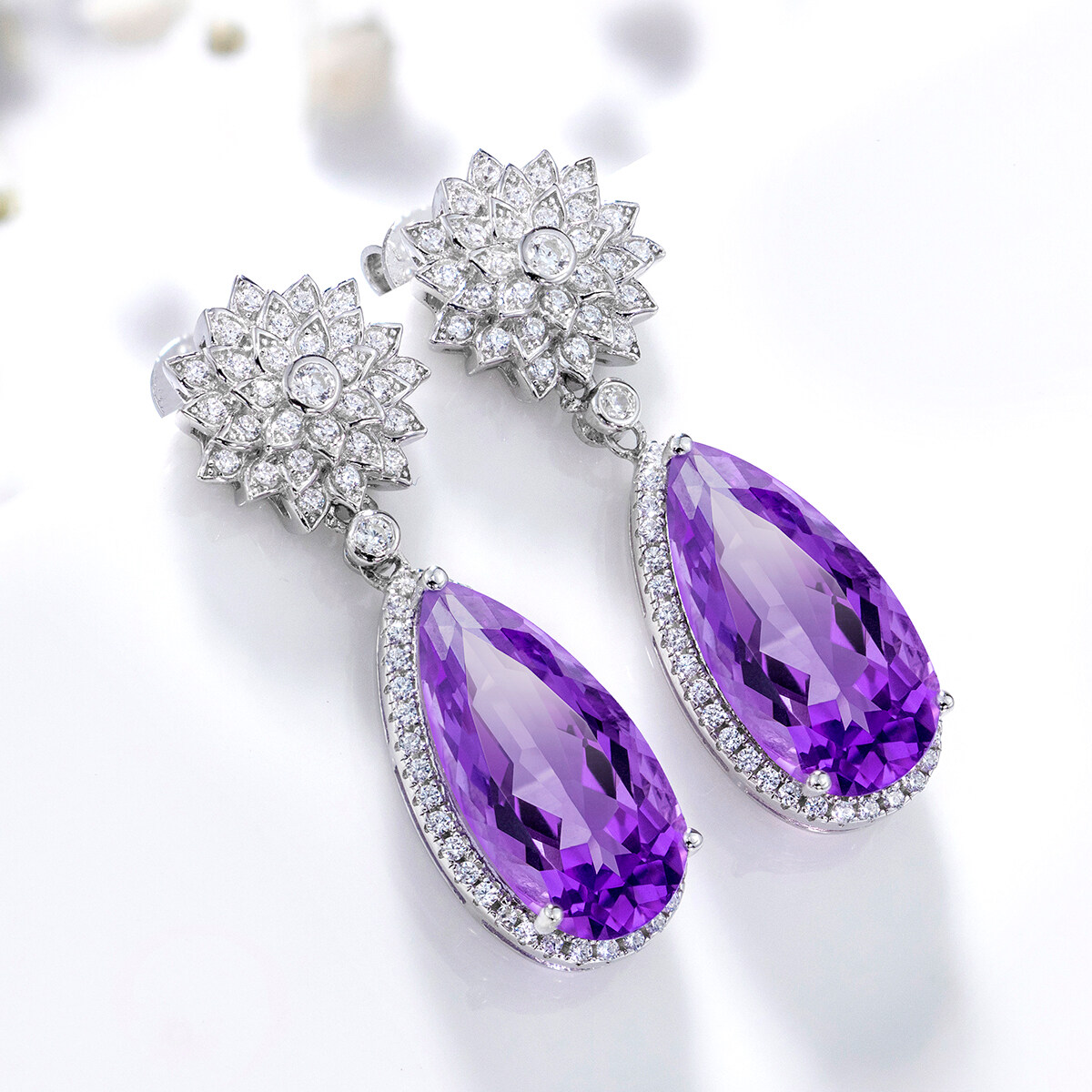 12.8 Carats Drop Earring Silver 925 Origianl Sale Natural Amethyst Earring Purple Gemstone Amethyst Earrings For Women Jewelry Wedding Style
