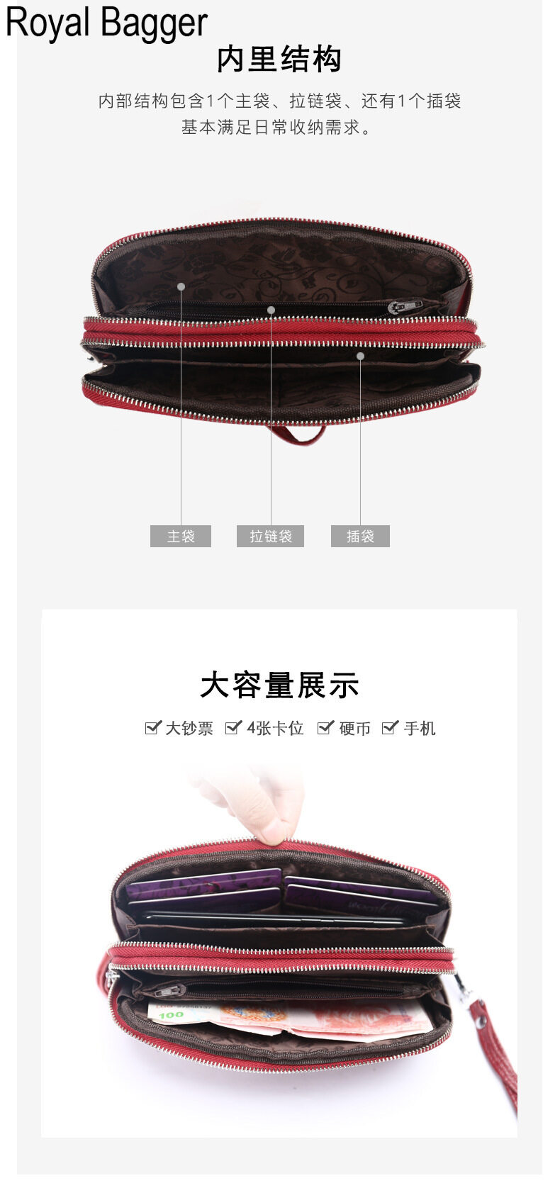 Royal Bagger Sheepskin Long Purse for Women Fashion Clutch Bag Genuine Leather Female Wallet Phone Purses Zipper Card Holder