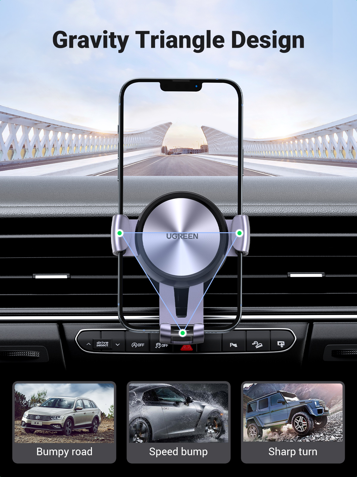 UGREEN Original Gravity Reaction Car Holder Phone Stand Universal Air Vent Mount Clip Cell Phone Holder for iPhone 7 8 Plus X Samsung Xiaomi GPS-Intl