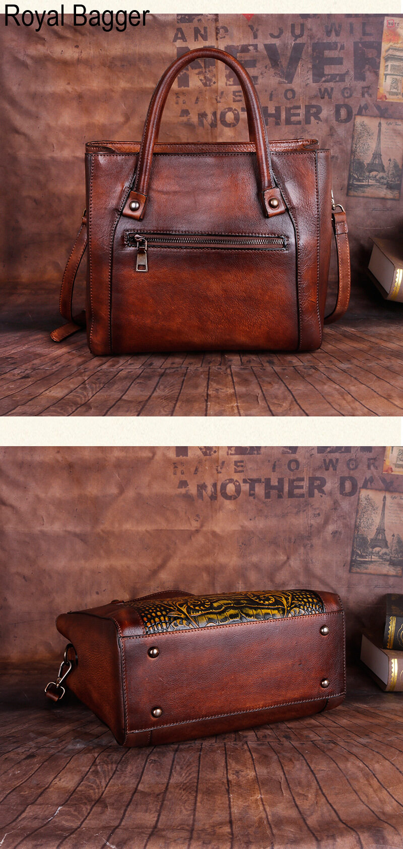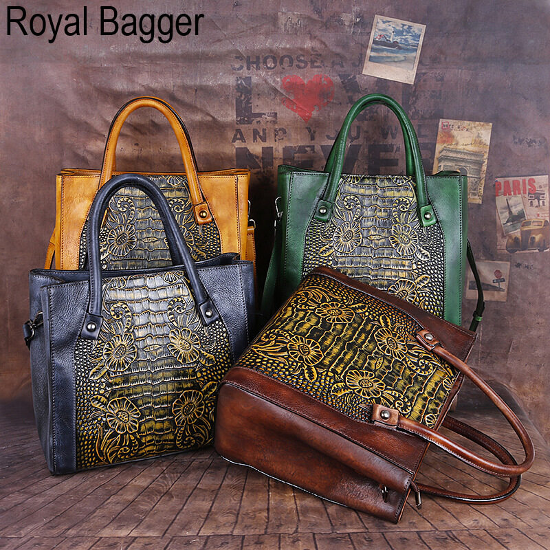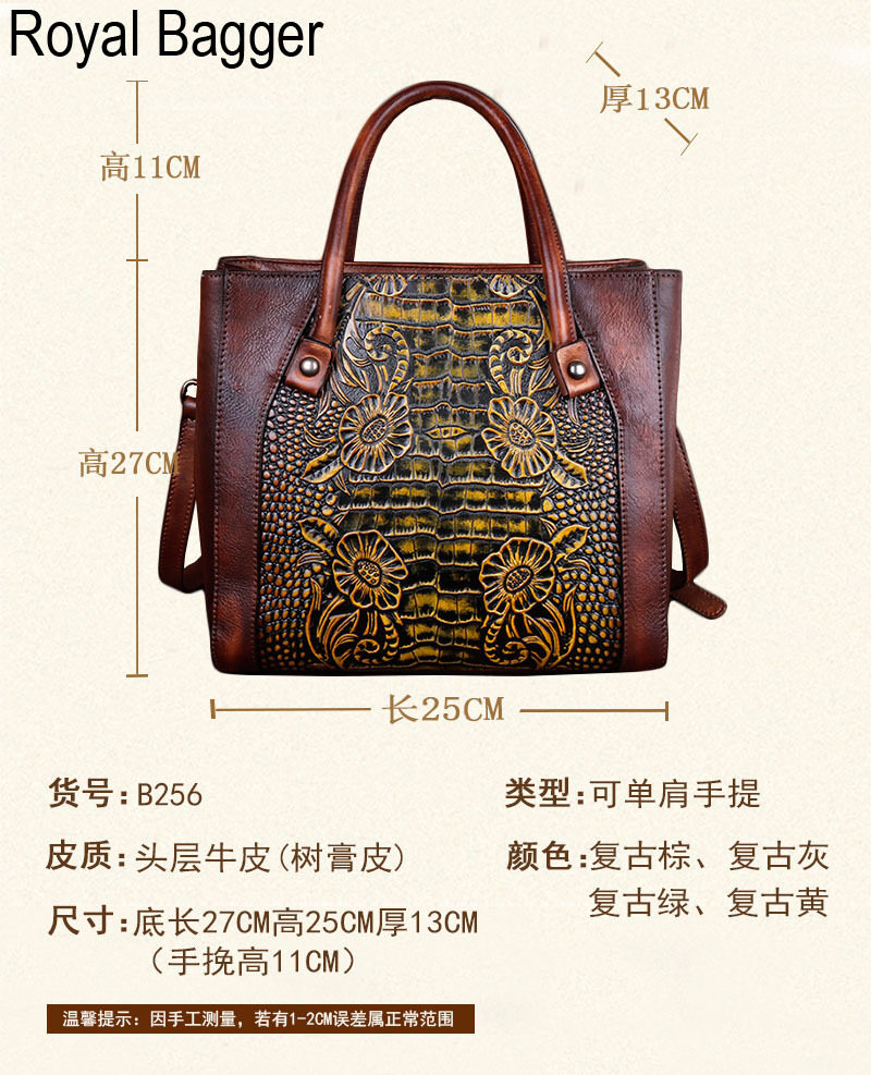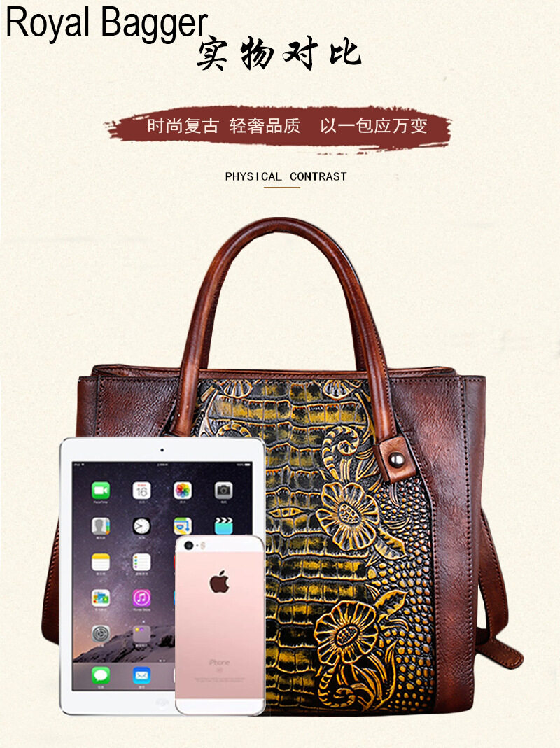 Royal Bagger New Fashion Top-Handle Bag For Women Genuine Cow Leather Elegant Retro Shoulder Bag Multifunction Ladies Girl Crossbody
