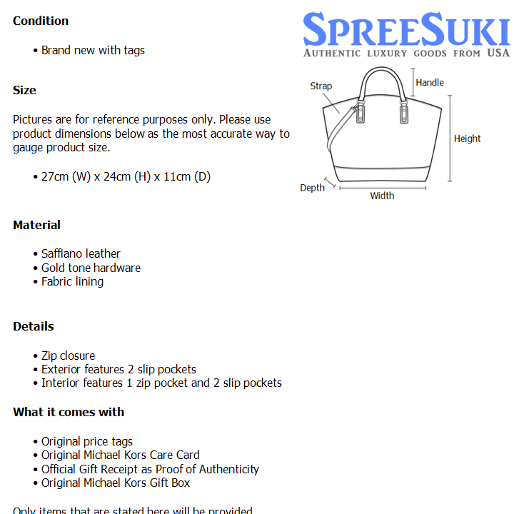 All our products are 100% authentic and purchased from Michael Kors stores in USA. We are a reputable registered business in Singapore and it is illegal to sell counterfeit goods in Singapore. This product also comes with a gift receipt which is printed by the Michael Kors store that we purchased the item from. It states the item that we purchased and the Michael Kors store that it was purchased from, proving the authenticity of the item. Buy with confidence.