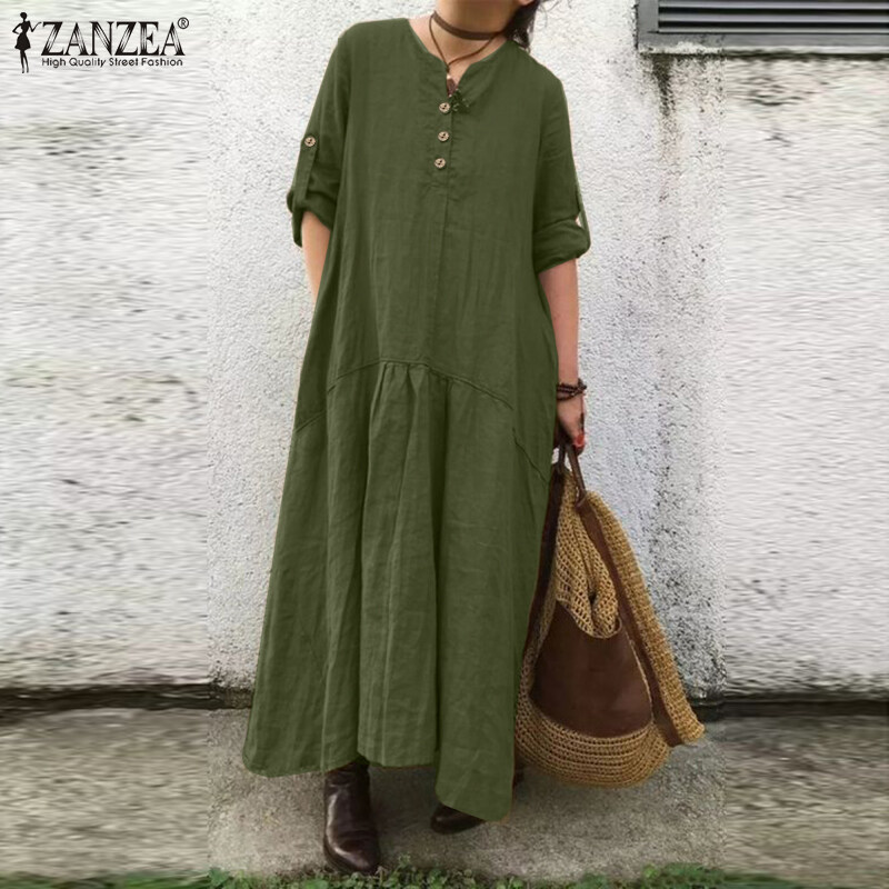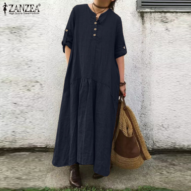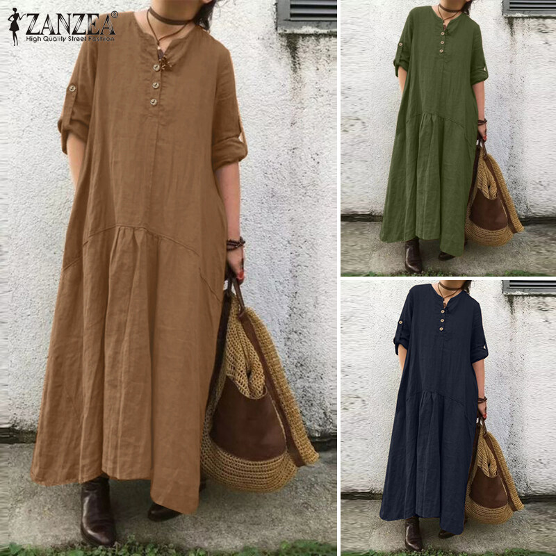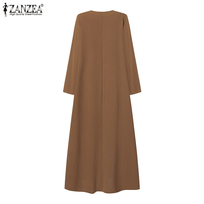 ZANZEA Women Simple Leisure Full Sleeved Loose Casual Maxi Dress Baggy Dresses #15