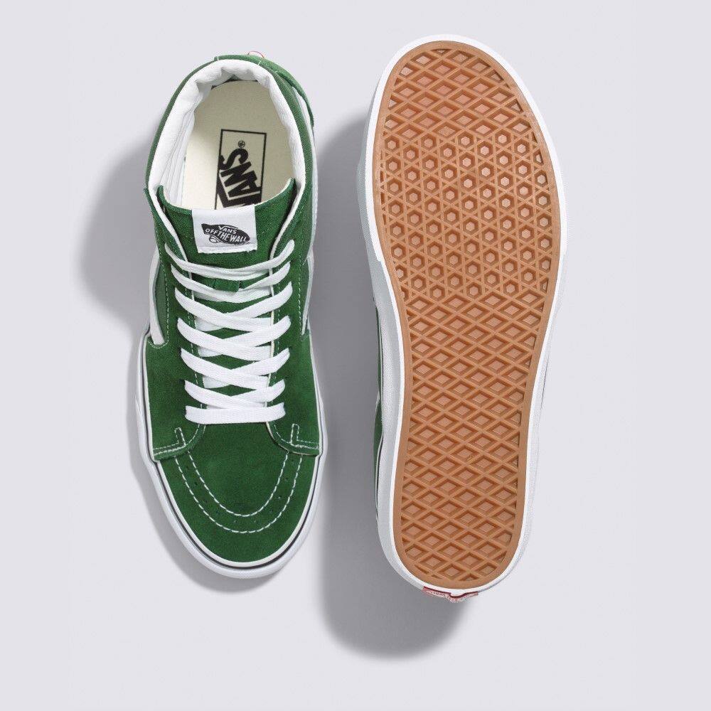 Made with sturdy suede and canvas uppers, the Color Theory Sk8-Hi honors our legendary high top shoe with eye-catching colorways ideal for the season. This timeless sidestripe style also includes reinforced toe caps, supportive padded collars, and signature rubber waffle outsoles.