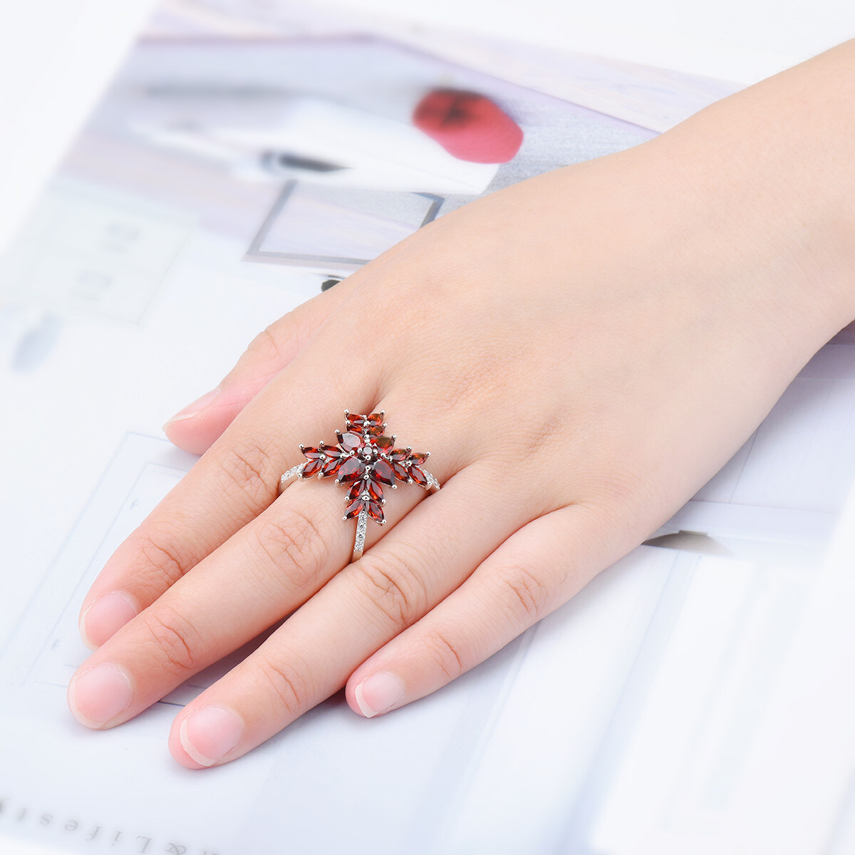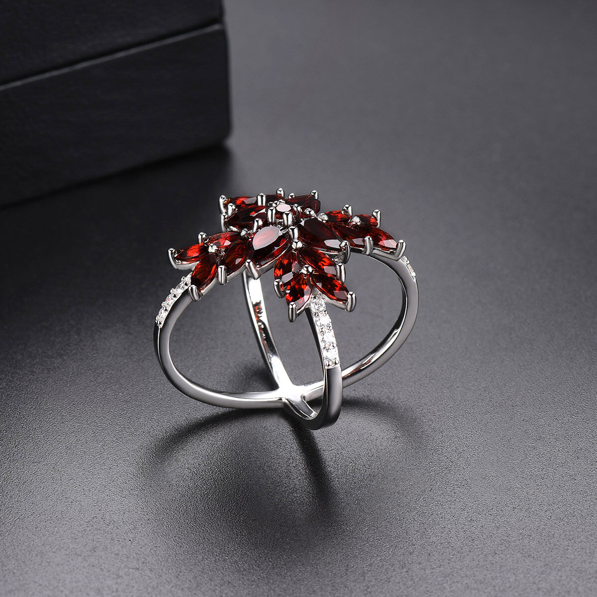 Jewelry Sets Genuine Red Garnet Cluster Earrings Ring Silver 925 Original Design Red Gemstone Fine Elegant Crystal Jewelry for Women Engagement Anniversary Gift