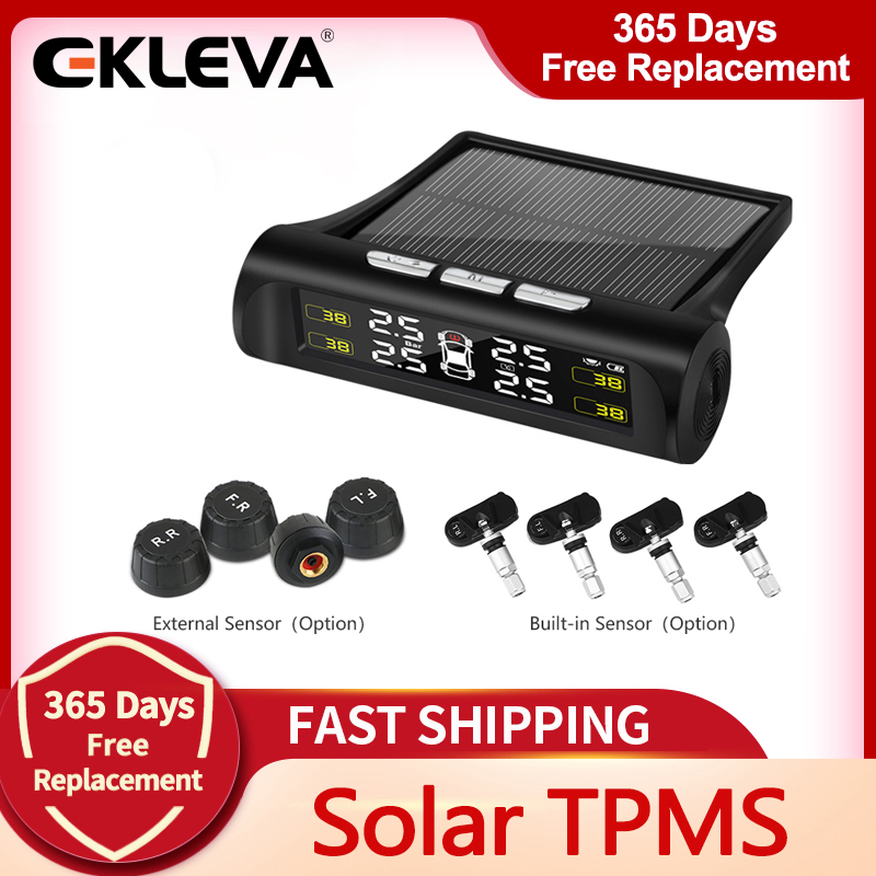 EKLEVA Solar Car TPMS Smart Tire Tyre Pressure Monitoring System USB Digital LCD Display Auto Security Alarm Warning with 4 Sensors