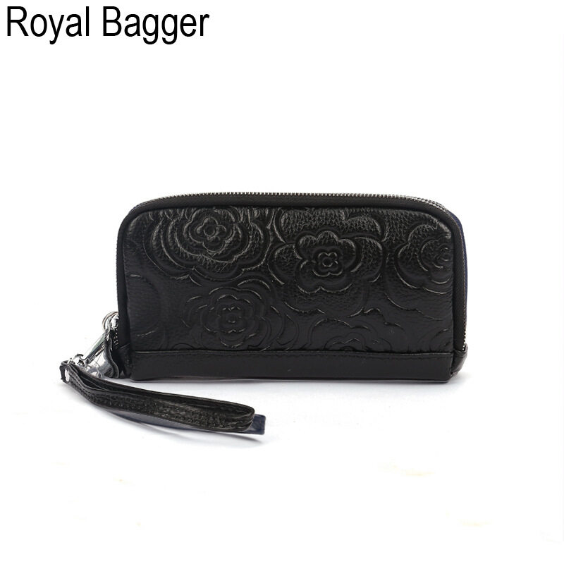 Royal Bagger Sheepskin Long Purse for Women Fashion Clutch Bag Genuine Leather Female Wallet Phone Purses Zipper Card Holder